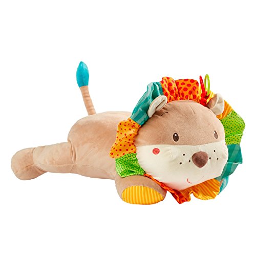 Der solini Activity Kuschel-Löwe ist mehr als ein Schmusetier. Er ist ein bunter Freund, der viele Überraschungen für das Baby bereit hält. ab der Geburt 57(L) x 36(B) x 29(H) cm mit Rasseln, Glocken, Knisterfolie verschiedene Stoffe und Texturen Der Kuschel-Löwe macht seinem Namen alle Ehre. Er ist supersüß und flauschig. Egal, ob das Kind anfängt zu krabbeln oder gerade erste Erfahrungen mit Steh- und Gehversuchen macht, der Kuschel-Löwe darf dabei nicht fehlen. Mit seiner wilden Mähne, seinen knisternden Füßen und den Rasseln und Glöckchen ist ein gern gesehener Gast im Kinderzimmer. Waschbar ist der solini Activity Kuschel-Löwe bei 30 °Celsius. Breite: 36 cm Höhe: 29 cm Länge: 57 cm Pflegehinweise: * Bleichen: Nicht bleichen * Professionelle Textilpflege: Nicht trockenreinigen * Waschen: Normalwaschgang 30° * Bügeln: Nicht bügeln * Trocknen: Nicht im Tumbler trocknen Geschlecht: UnisexMarkenartikel in hoher Qualität von SOLINI