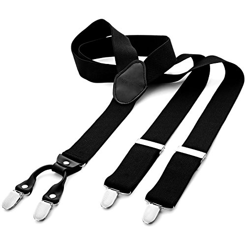 DonDon® Herren Hosenträger breit 3,5 cm - 4 Clips mit Leder in Y-Form - elastisch und längenverstellbar schwarz
