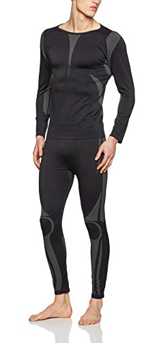 Herren Ski-, Thermo- & Funktionswäsche Set (Hemd + Hose) ohne störende Nähte von celodoro Schwarz / Grau Größe L / XL