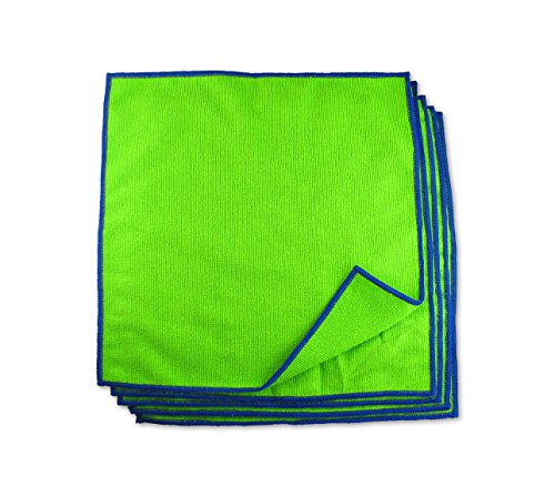 5 x CREANOW Mikrofaser-Tücher 30 x 30 cm grün mit dunkelblauer Kante