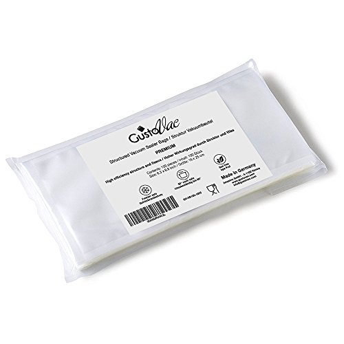 GustoVac Vakuumbeutel 100 ST. 16x25 cm Premium für alle Vakuumiergeräte - Optimal für Küche, Haushalt, Sous-Vide / Vakuum-Garen, Einfrieren und lange Haltbarkeit - (100 Beutel Premium PE-Fleece-Siegelrandbeutel - 90µ mit Struktur) Made in Germany