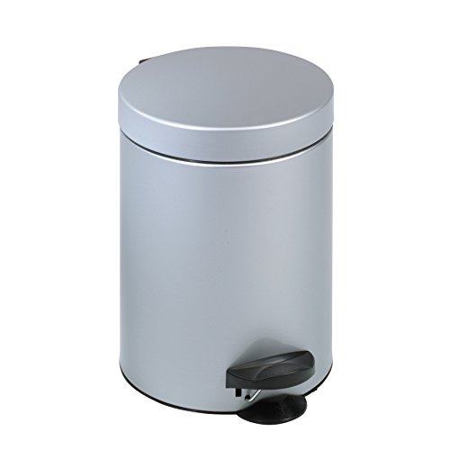 axentia Kosmetikeimer, Treteimer mit Tragegriff, Badaccessoires und WC-Zubehör mit 5 Liter Fassungsvermögen, Abfalleimer für Küche und Haushalt, Mülleimer mit einem Durchmesser von ca. 21 cm, Höhe ca. 24 cm, silber
